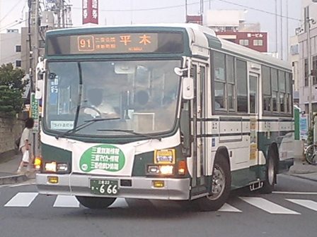 備考 | キュービック車体のLT。中勢統合前は津に所属。07〜08年頃に所属表記が津から中に変更されています。12年にはお絵かきバス化されています。13年10月初旬までに北勢に移籍してイオンモール東員の従業員輸送に従事。14年春には引退しています。 |