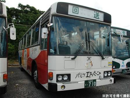 備考 | 志摩スペイン村のパルケエスパーニャ色のブルーリボンです。長尺でエアサス仕様のB特急仕様のため、座席は一般の路線車とは異なります。晩年は志摩で特定輸送などで活躍していましたが、15年頃に引退しました。 |