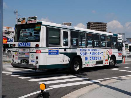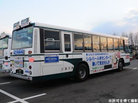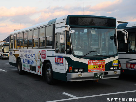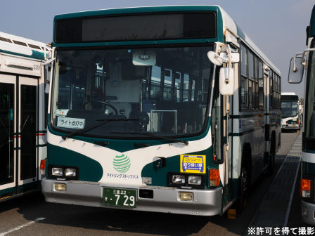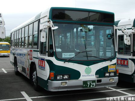 備考 | キュービック車体のLV。前面には社紋の代わりにアイドリングストップバスのマークが表示されています。この車は非公式側のみパートラッピングが施されています。14年後半にデイライトが設置されています。16年春に中勢営業所所属車ほぼ全てに前面社番表示が貼られました。17年7月頃に引退した模様です。 |