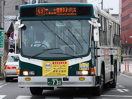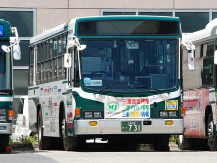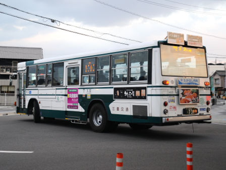 備考 | キュービック車体のLV。前面には社紋の代わりにアイドリングストップバスのマークが表示されています。中勢統合前は津に所属。07〜08年頃に所属表記が津から中に変更されています。10年後半〜11年前半のうちに広告が変化しています。14年頃には更に広告が変更されています。14年後半から15年のうちにデイライトが設置されています。16年春に中勢営業所所属車ほぼ全てに前面社番表示が貼られました。17年8月頃に引退した模様です。 |
