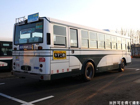 備考 | 7E車体のLV。中勢営業所に所属しています。広告が少なめでスッキリしています。14年後半から15年のうちにデイライトが設置されています。16年春に中勢営業所所属車ほぼ全てに前面社番表示が貼られました。17年秋までに引退しましたが詳細時期不明。 |