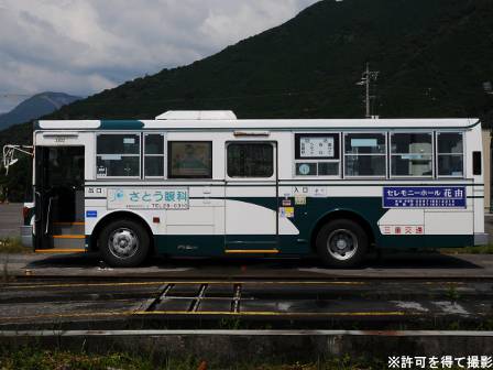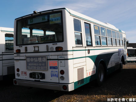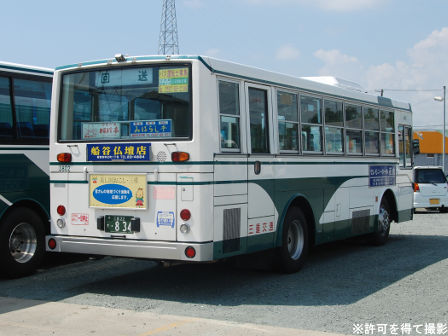 備考 | 7E車体のLT。KC-代にMCする直前の車両で、社番は3800番台に突入。南紀or海山所属のこの車は幕式のまま残っています。リア窓上広告が枠ごと無いので以前全面ラッピング車になっていたのかもしれません。15年のうちにデイライトが設置され、南紀・海山所属車は方向幕の内容も更新されています。15年11月に海山事業所の営業所機能が廃止され、南紀に統合となりました。16年後半〜17年前半のうちに引退した模様です。 |