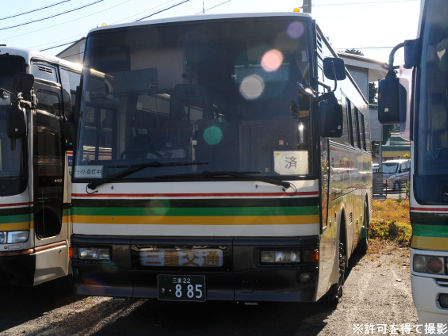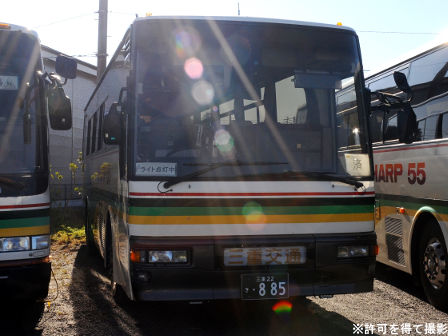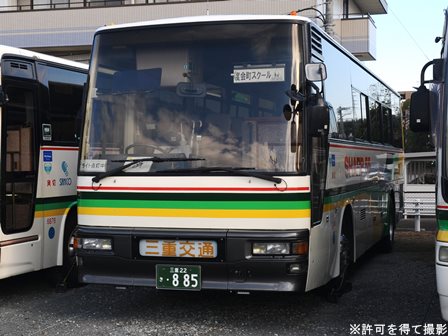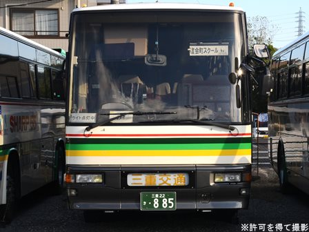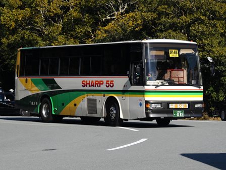 備考 | 観光用のスーパークルーザーHDです。車体が通常より短い11.5mで車高の低い、いわゆる上高地仕様です。北部観光から南部観光へ移籍してきた車両です。度会スクール用になった時に伊勢へ転属。15年のうちにデイライトが設置されました。17年春に引退しました。 | |||