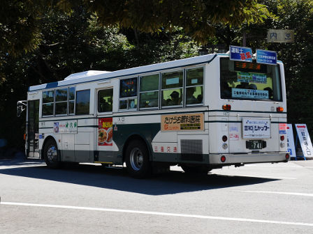 備考 | 7E車体のLV。11〜13年の間に松阪から伊勢へ転属した模様です。事業者限定バスコレの模型化対象車になりました。15年秋に白装束となり、15年10月10日開催の伊勢まつり(祭り自体は11日も開催)にてお絵かきバスになりました。16年頃にデイライトが設置されました。また、16年10月8日の伊勢まつり(祭り自体は9日も開催)で再度お絵かきバスになり、お絵かき内容が変わっています。17年は新たなお絵かきバスにならなかったため、だいぶ色が落ちてきています。20年までに引退している模様です。 |