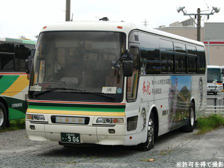 備考 | ちょっと短い11.2mのエアロバスです。SHARP55というグレードでした。新製配置は名古屋営業所で名古屋ナンバーを付けていましたが、09年に南部観光に移籍し再登録されています。宇治橋が架け替わった頃にラッピング化された模様です。 14年頃に三重急行に転属し路線転用改造され、松阪―尾鷲の長距離路線バスで運用されています。暫くは元の全面ラッピングのまま運用されていて、いつの間にか剥がされましたが、屋根まで掛かる塗装が何故か無くなっており印象が異なります。15年にはデイライトが設置されています。17年前半のうちに引退した模様です。後任の車両はガーラHDの5935号車。 | |||
