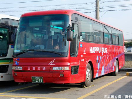 備考 | 真っ赤なエアロバスです。以前は前後の社名表記以外は全て八風バス仕様でした。2741号車とは異なり、09年以降も八風バス所属だった可能性有。15年までに中部観光へ転属、時期不明ですが三重交通社紋に変更されHAPPU BUSロゴはSUPER GRAND IIに改められました。また、15年にはデイライトも設置されています。16年後半にフロントのバイザー部分へ社番が貼り付けられました。18年には東芝の輸送増強のため四日市へ転属しています。19年に引退した模様です。 | |||
