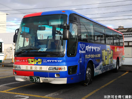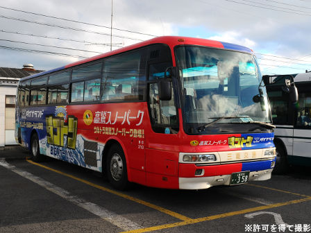 備考 | 八風バスのエアロバスです。09年頃には桑名所属だったようですが13年末撮影時点で八風バスの表記があるため八風バス所属になっているとみられます。15年末までに高鷲スノーパークの全面ラッピングとなり、当該スキー場行のツアーバス専用車だそうです。デイライトも設置されています。16〜17年のうちに引退しています。 |