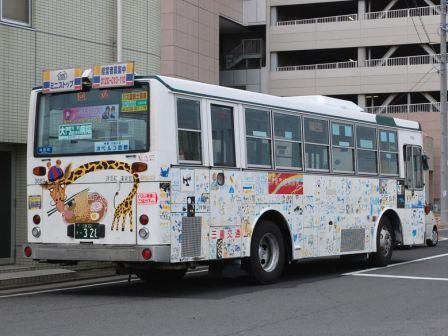 備考 | シャシがU-代にMCし、車体も7Eになった直後の車両。P-代打の5Eから社番は連番になっています。この車は中勢統合前は津に所属。07〜08年頃に所属表記が津から中に変更されています。07年秋頃に5Eの次のお絵かきバス化。リアの津高美術部が書いた絵がシュールでしたが、09年春頃に引退しました。 |