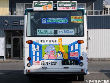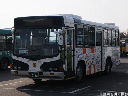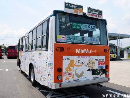 備考 | キュービック車体のLT。中勢統合前は津に所属。07〜08年頃に所属表記が津から中に変更されています。以前はZTVの非公式側WB間パートラッピング仕様でしたが、14年の新町フェスタ2014でお絵かきバス化されました。15年頃に2回目のお絵かきバス化。16年春に中勢営業所所属車ほぼ全てに前面社番表示が貼られました。17年4月9日の第6回津駅前ストリートまつりで3回目のお絵かきバス化。17年末までに志摩へ転属してスクール運用に就き、19年のうちに引退しました。 |