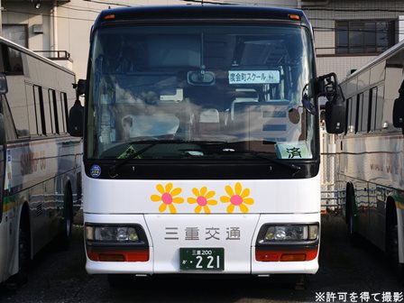 備考 | 三交パルックの専用色を纏うガーラHDです。三重交通のガーラでは珍しく、行灯無し仕様のフロントマスクとなっています。15年のうちにデイライトが設置されています。16年には引退した車両の代替で伊勢に転属し、度会町スクール用になっています。 | |||