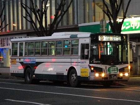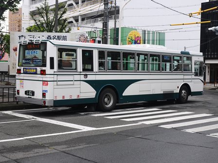備考 | 桑名地区の代名詞である長尺の7EでQ尺(最大長)の車体が勇壮です。三交のQ尺車はエアサス装備が基本のようです。KC-代となりましたが7Eの場合は車体の各部はあまり変化しておらず、扉間の小窓が無くなった程度でしょうか。16年までに方向幕LED化改造を受け、前面に社番が貼り付けられています。22年に引退しました。 |