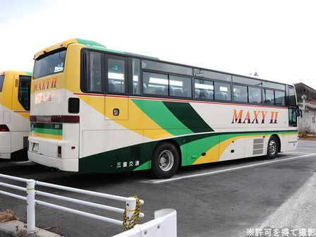 備考 | 三交は希少となった貸切用SHD車のセレガR GDです。日野車の貸切車はまとまった数が在籍している三重交通でもセレガR GDは2台のみ。13年に伊賀観光から三交伊勢志摩交通に転属しています。また、時期不明ですが社紋も変更されています。15年のうちにデイライトが設置されています。17年末に三交伊勢志摩交通から三重交通南部観光営業所に転属、車体の表記が三重交通に戻りました。19年正月輸送を終えて引退した模様です。 | |||