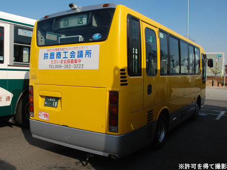 備考 | KC-代は大型登録で大量に導入されたものの、KK-代は小型登録・コミュニティバスが中心。リアの行先表示器がありません。鈴鹿市のコミュニティバスC-BUS用のリエッセです。専用カラーを纏っており、三交本体のKK-代リエッセと異なりリア幕も装備しています。C-BUSでは三重交通と異なり前乗り後降りです。14年夏までにデイライトが設置されています。16年秋にポンチョが導入され、KK-代の4台は引退しました。 |