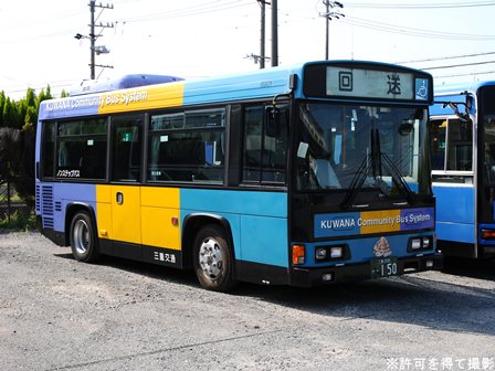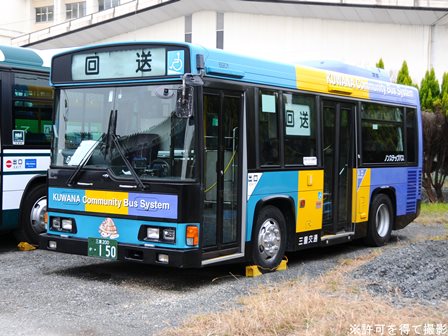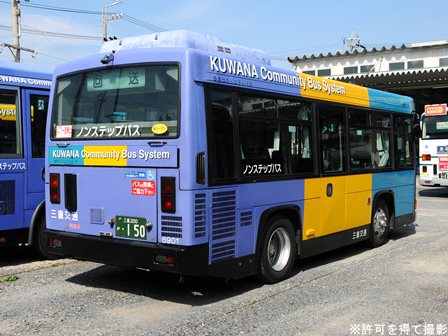 備考 | 三重交通では非常に珍しい日野の路線車。桑名市のコミュニティバス「K-バス」の専用車で、専用色のレインボーHRの7m車が2台導入されました。15〜17年の間にデイライトが設置されヘッドライトのロービームのみLED化されています。18年前半のうちに行先表示器が幕式からLEDに換装されています。6497号車の導入により19年末までに引退した模様です。 |