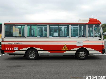 備考 | 津市美杉地区のコミュニティバス用レインボーRBです。日野車ですが、社番が7000番台に突入しています。方向幕は枠自体あるものの紙で表示されており、故障で幕を抜いたのか中古導入車かと思われます。11年末までに引退しています。 |